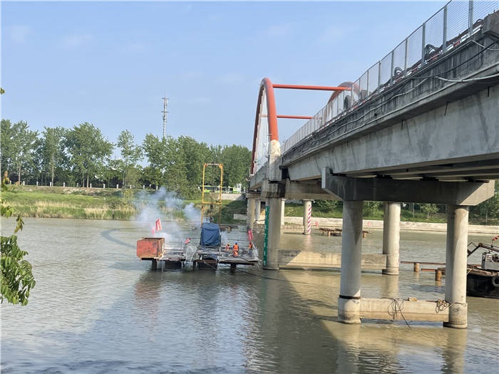 2022年5月8日上午,350省道苏北灌溉总渠大桥防船撞设施改造工程首桩顺利开钻,标志着该桥增设防撞设施施工正式拉开序幕。