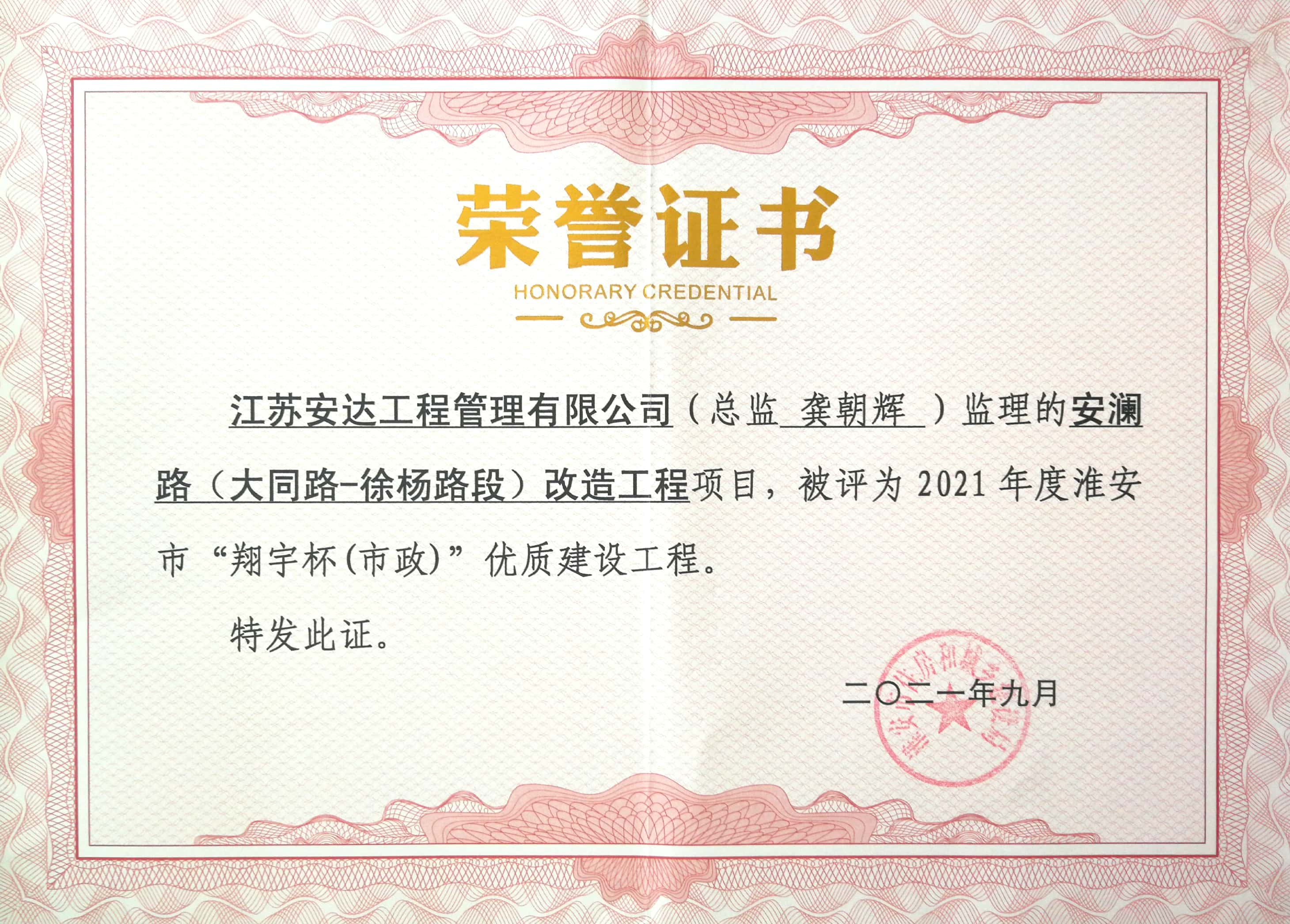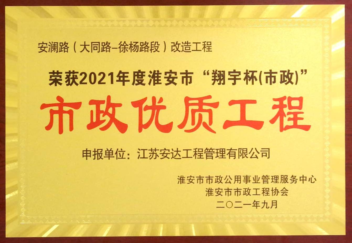 近日,由淮安市市政工程协会下发的关于表彰2021年度淮安市“翔宇杯(市政)”的决定中公布了我开云线上平台_开云(中国)
